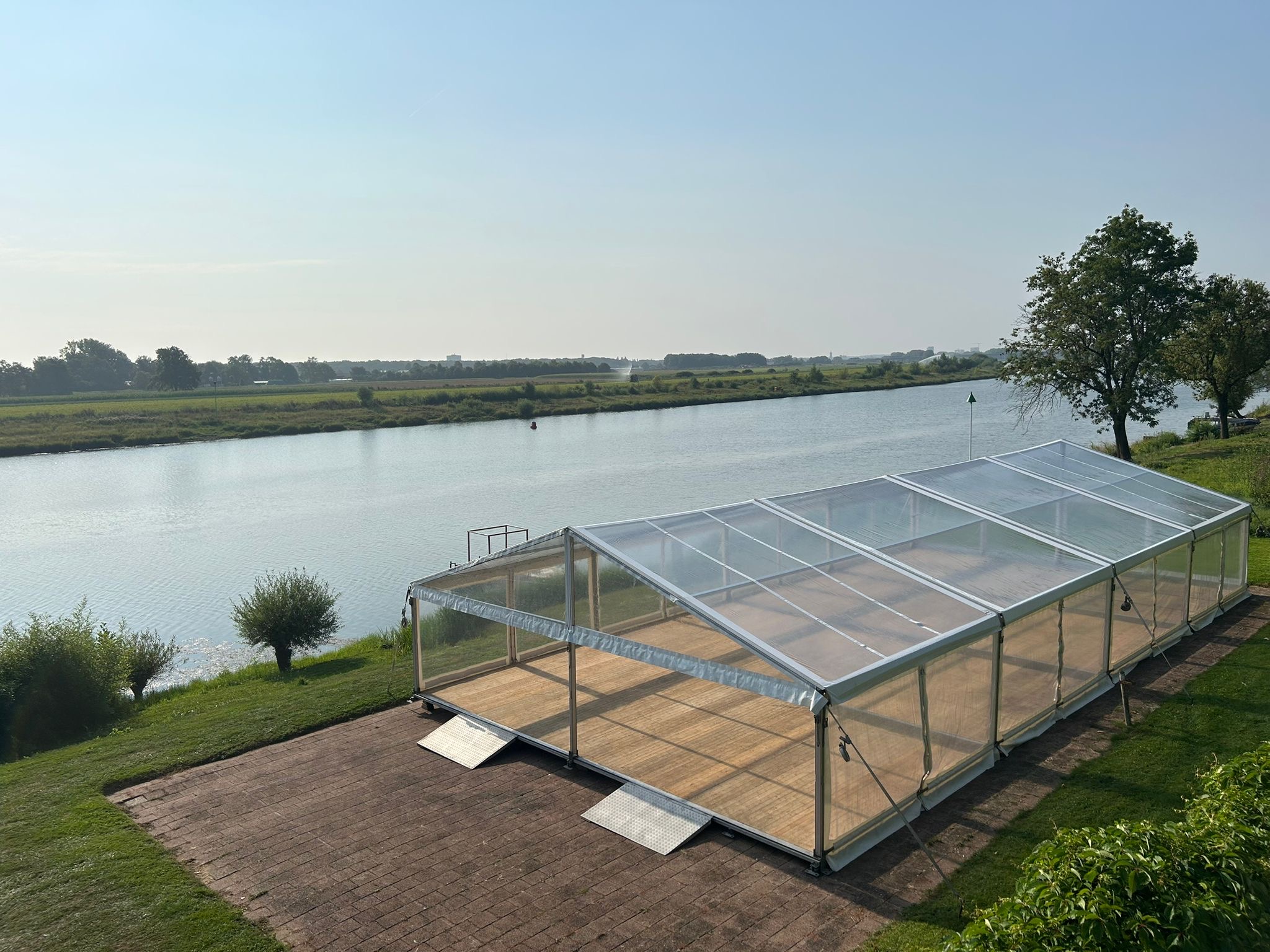 Onze aluhallen kunnen flexibel worden aangepast, met opties zoals transparante daken voor een vriendelijke uitstraling, vloeren (vlonder of systeem), en podiumconstructies (40-80 cm hoog).
